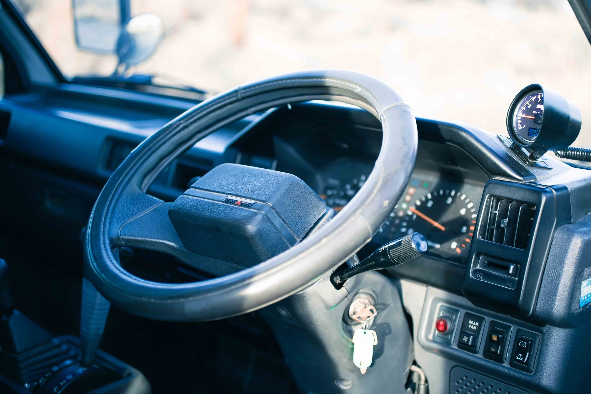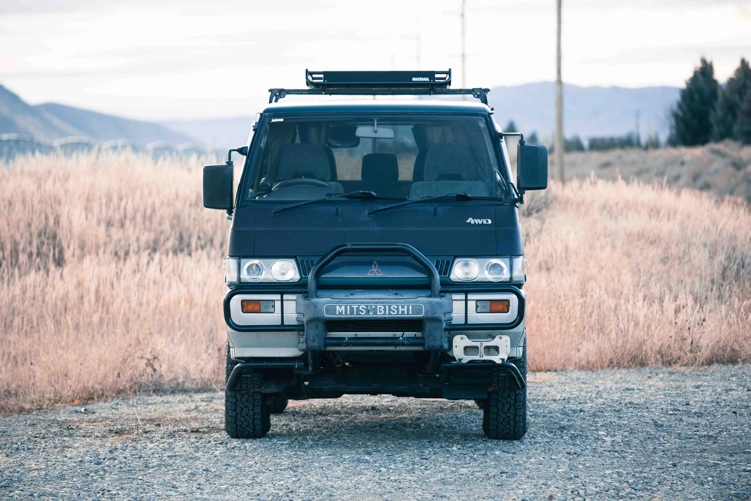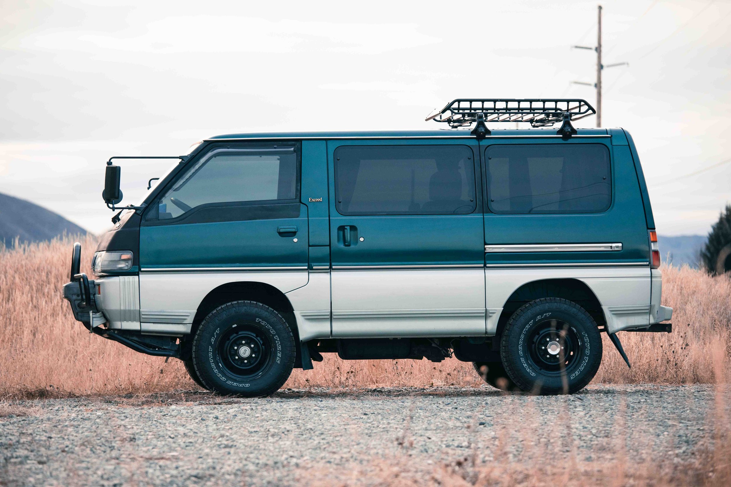 Meet Sly — a 1993 Mitsubishi Delica L300 Star Wagon Exceed with character, grit, and just the right amount of turbo whistle. Factory two-tone green/grey paint, rugged steel wheels wrapped in 29" Toyo A/Ts, and a roof rack give it that authentic expedition look. Under the hood, the 2.5L 4D56 turbo-diesel has been woke up with a Stage 1 tune, advanced injection timing, 14 psi boost, and a 2.25" side-exit exhaust — monitored by a 3-in-1 gauge. It’s RWD with selectable 4WD high/low, making it equally happy in the city or deep in the woods.